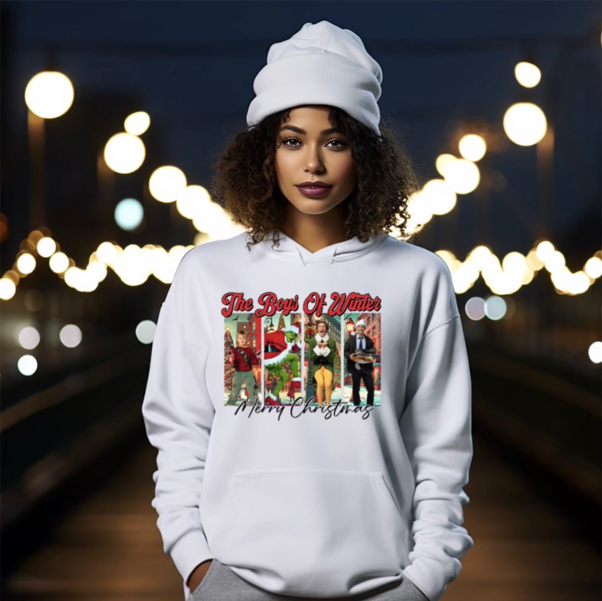 Get ready for the holiday season with “The Boys of Winter” Christmas hoodie! Featuring iconic festive characters and a “Merry Christmas” greeting, this hoodie brings together beloved holiday personalities to keep you warm and stylish. Perfect for Christmas parties, cozy nights by the fire, or just spreading seasonal cheer, this hoodie is a must-have for any Christmas lover.
