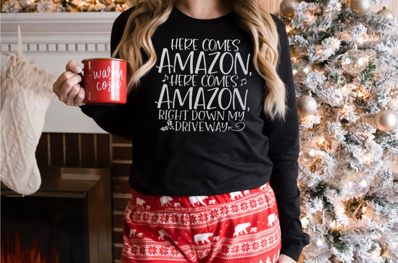 Embrace the holiday rush with a smile in our “Here Comes Amazon” Holiday Graphic Tee. This fun and festive shirt captures the excitement of seasonal shopping, with a playful design that will make everyone chuckle. Made from a super-soft, breathable cotton blend, it’s perfect for those cozy days at home or out running errands. With a classic fit and lightweight feel, this tee offers comfort without compromising style. Whether you’re gifting it to a friend or treating yourself, it’s sure to become a holiday favorite.